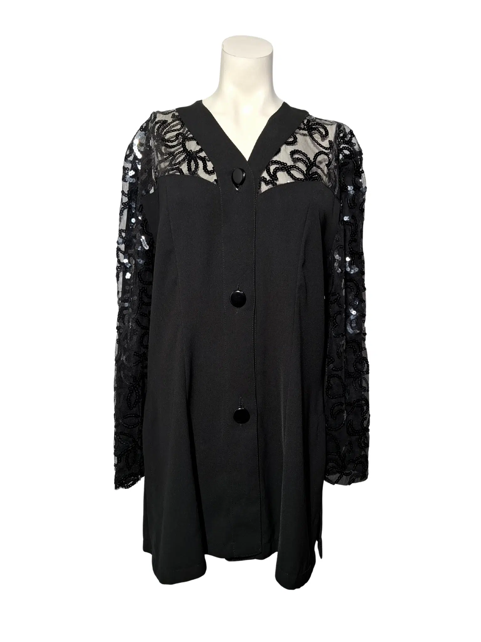 - Juoda vintažinė žvyneliais siuvinėta palaidinė, M/L